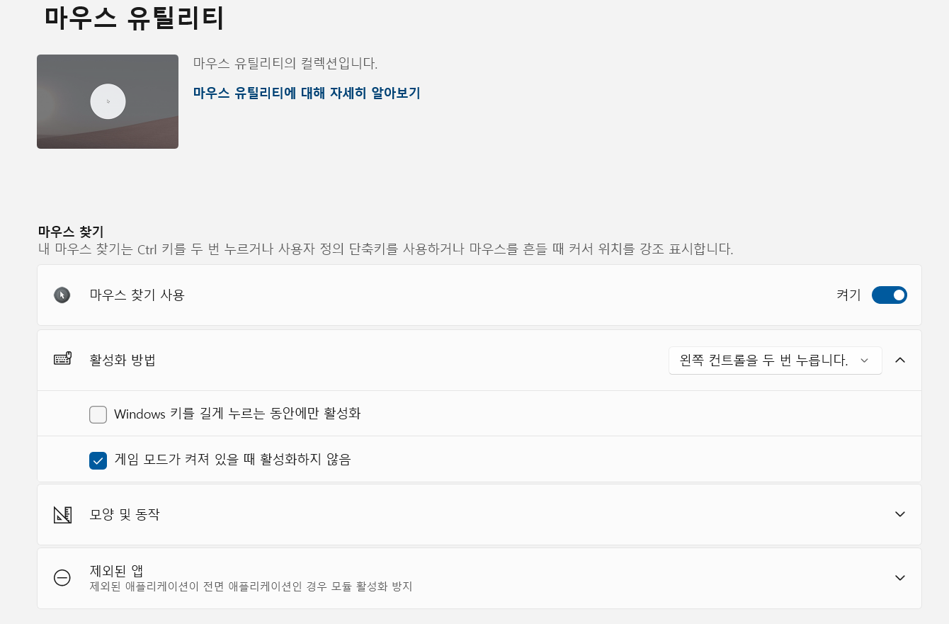 # 마우스 유틸리티 (커서 찾기)