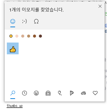 thumbs up 이렇게 띄어쓰기가 있어도 이모지를 잘 찾아주네요~