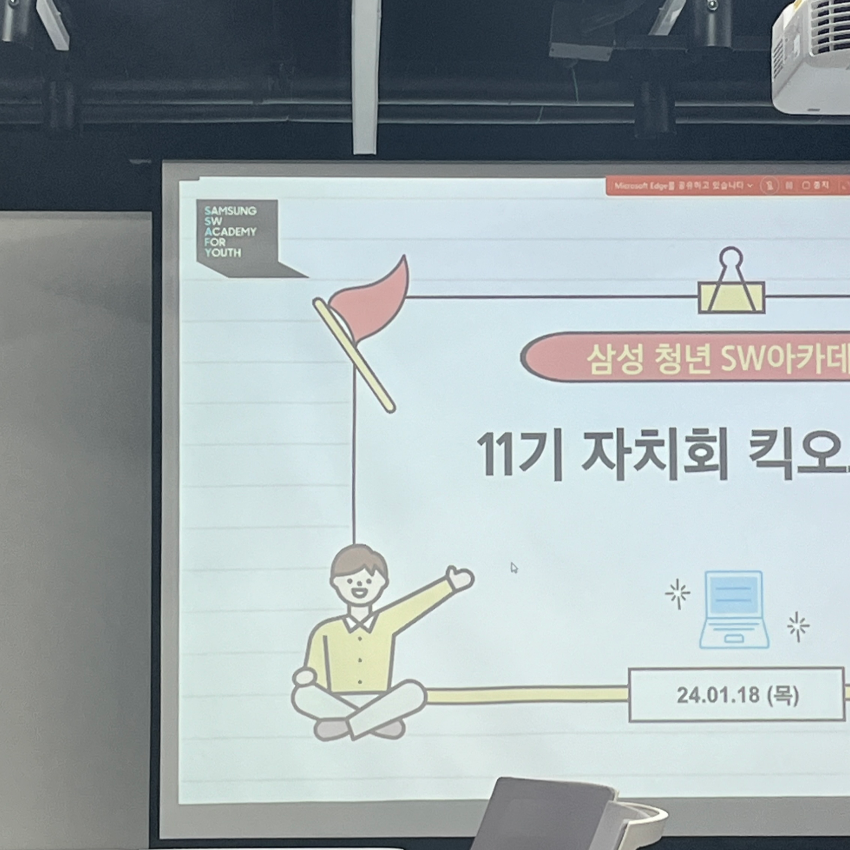 물품 중에 싸피 로고가 박힌 후드집업이 있다. 지금도 엄청 유용하게 잘 입고 있고 여름에는 그냥 피부와 같다. 선착순으로 색깔을 골라가게 했는데 흰색이 인기템이었다. 일찍 오는 편이라 아무 생각 없이 흰색을 골랐는데 나중에 보니 블루가 싫어서 (ㅠㅠ) 흰색이랑 교환하자는 글이 올라왔다.